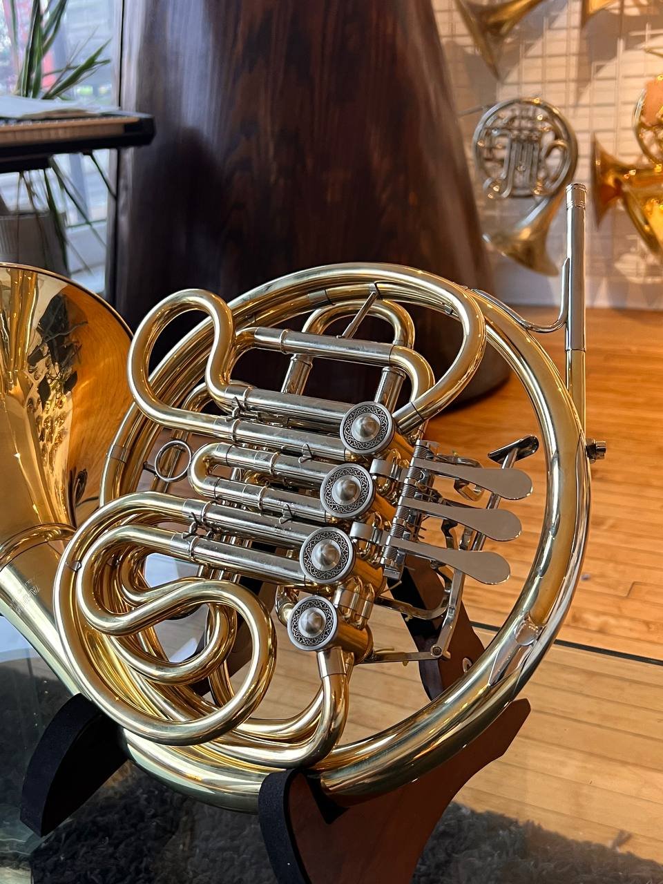 This customized Yamaha YHR-567 is a full double horn in excellent cosmetic condition with valve compression measuring 0.2 – essentially like a new instrument. The rotors are fast, quiet, and smooth. We installed a custom Balu leadpipe, which gives the horn an easy high register and very secure slotting. Free laser engraved caps (a $350 value)